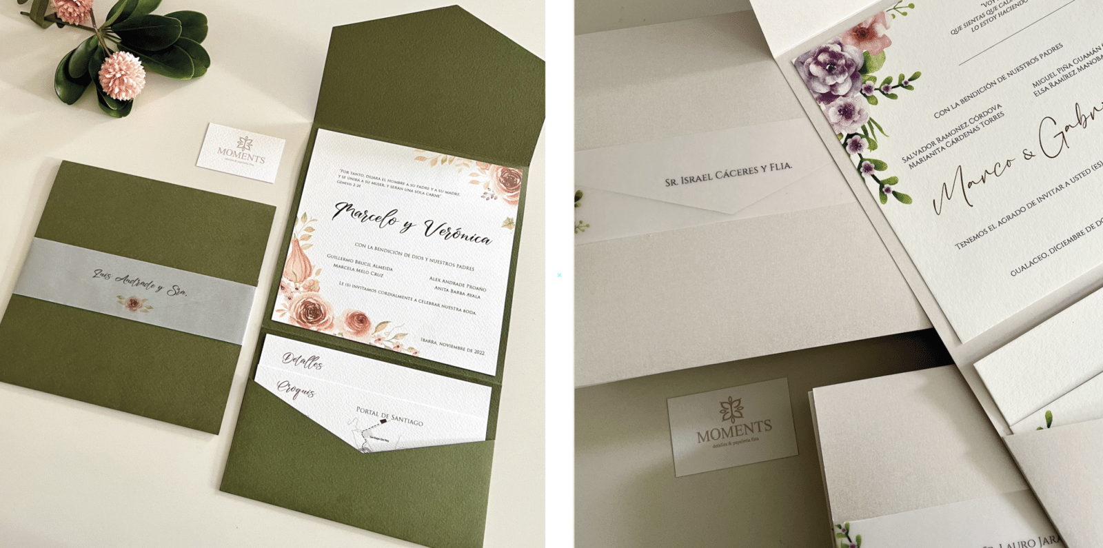Moments nace en el año 2019 en el norte del Ecuador, produciendo papelería de alta calidad para bodas y eventos y branding para empresas y marcas corporativas.