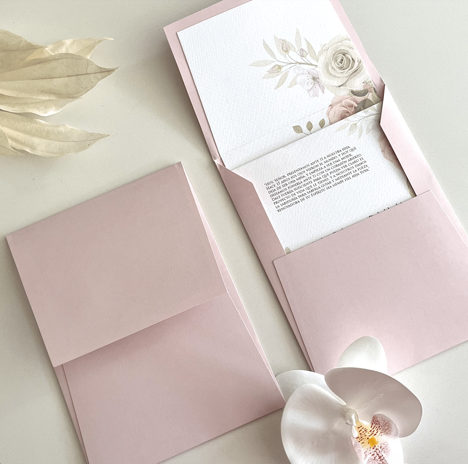 Menú de 8,5x14cm en cartulina fina italiana de 215gr. a 300gr. El cliente elige si desea en cartulina mate efecto algodón o nacarada.